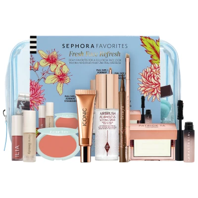 A nine-piece set of trending makeup products for a glowing, effortless no-makeup look. Included are four full-size items from PATRICK TA, Benefit Cosmetics, and Iconic London. Highlighted Ingredients: - Growth Peptides (PATRICK TA Major Brow Shaping Wax): Support healthy hair growth- Japanese Green Tea (Charlotte Tilbury Airbrush Flawless Setting Spray): Supports the natural moisture barrier for soft, hydrated skin- Marine Plants (tarte SEA Breezy Cream Blush): Reduce the look of fine lines whil