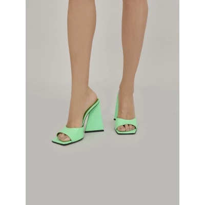 Devon" Neon Green Patent Leather Mule With Pyramid Heel, Height 115mm