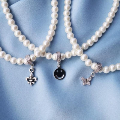 Custom Charm Silver Pearl Necklace
