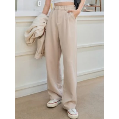 Beige Casual Polyester Plain Tailored Slight Stretch Summer Pants, size features are:Bust: ,Length: Long ,Sleeve Length: