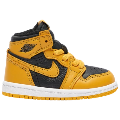 The Jordan Retro 1 High OG offers you the old-school Jordan look youve always coveted and the world-class style youve come to expect. Inspired by the original Air Jordan I, this version of the iconic sneaker is tailored for smaller feet. Full-grain leather upper for a premium look and feel. Stretch lacing system with an ankle pull tab allows easy on-and-off. Solid rubber outsole with flex grooves delivers traction and durability. Jordan Retro 1 High OG - Boys Toddler Basketball Shoes - Pollen / White / Black, Size 4.0.