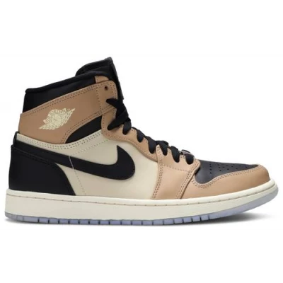Making a return for the fall-to-summer transition, the Air Jordan 1 High 'Mushroom' was released July 2019 in neutral, earthy tones and the classic construction of the original from 1985. Part of a two-set pack, this shoe accompanied a retro AJ4 in the same colorway, and exhibits the fundamental elements that made it popular on mid-80s courts and as a subject of frequent redesign: an ankle-saving, layered construction in coordinating color contrast.