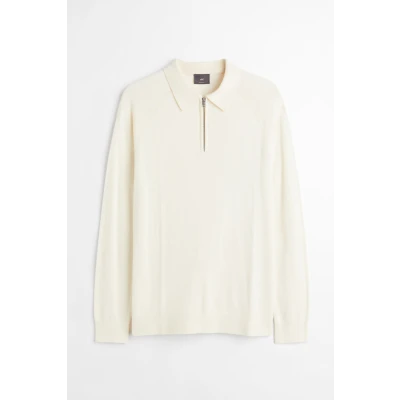 Muscle-fit polo shirt in a soft, fine-knit viscose and cotton blend designed to showcase the bodys physique. Collar, quarter-zip at upper front, and long raglan sleeves. Ribbing at cuffs and hem.