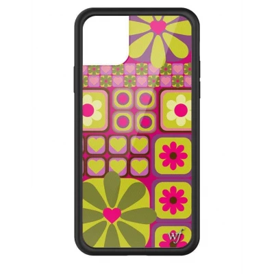 Quirky And Retro Flowers Align On Our Limited Edition Flower Funk Iphone 11 Pro Max Case. Retro Flowers And Hearts Take On Bright Purples, Soft Pinks, Fuchsias, And Chocolate Browns To Align In This Case Inspired By Funky 60 Florals.