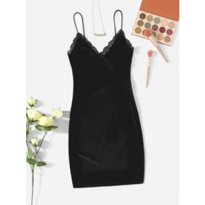 Black Elegant Sleeveless Velvet Plain Bodycon Slight Stretch Fall/Winter Women Dresses, size features are:Bust: ,Length: Short ,Sleeve Length:Sleeveless