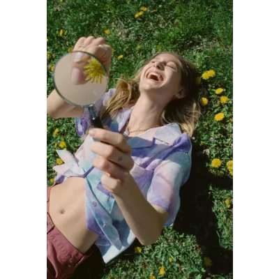 Tie-dye shirt by Urban Renewal crafted using recycled materials. Short-sleeve style with a button-down front and a notched tab collar. Created from deadstock or discarded fabrics that would have gone unused, this brand-new top was made in the USA by Urban Renewal. About Urban Renewal Remnants. Urban Renewal pieces made in the USA Sustainably up-cycled garments that have been made from sourced remnant materials Each piece has been crafted from small-batch fabric rolls and is exactly as pictured C