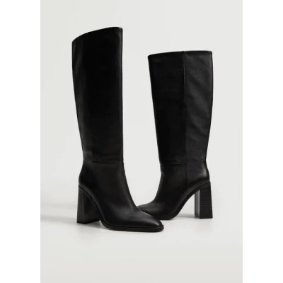 Rectangular heel, Tall leg, Rounded toe, 10 cm heel, The garments labelled as Committed are products that have been produced using sustainable fibers or processes, reducing their environmental impact. Mangos goal is to support the implementation of practices more committed to the environment, and therefore increase the number of sustainable garments in the collection.