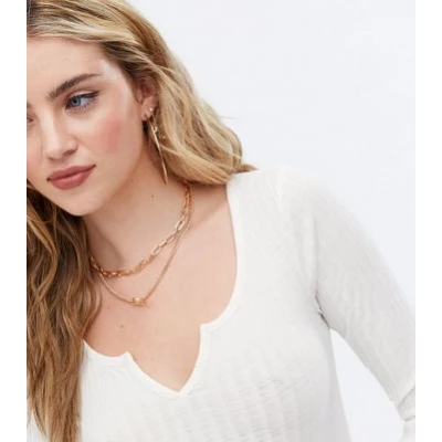 Not-so-basic basics? We’re talking about this white notch top. - Notch neckline - Long sleeves - Soft ribbed jersey - Made with recycled polyester - Slim fit - Daisy is 5'9"/175cm and wears UK 10/EU 38/US 6 *This piece is part of New Look Kind: styles that are responsibly sourced and friendlier to the planet.*