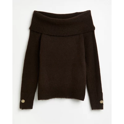 Brown Bardot Knitted Jumper