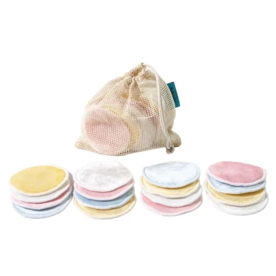 About the product .MOTHER NATURE APPROVED: Each package comes with 14 Reusable Makeup Remover Rounds and 1 Reusable Cotton Laundry Bag. Made of 100% natural bamboo fibers, these rounds make it easy to remove any application in a gentle way. .SOFT AND TENDER ON YOUR SKIN: Don't suffer from skin irritation or fluff residue that you'll get with disposables. Our bamboo rounds will leave your skin feeling fresh, clean and smooth. .PRACTICALLY PAY FOR THEMSELVES: Our makeup rounds are machine washable and quick to dry. With a bit of love and care, you’ll be able to get over 1000 uses out of each of these bamboo rounds. It won’t be long before you say goodbye to disposables for good. .MAKING IT EASY TO BE ECO-FRIENDLY: You’ll be relieved at how simple of a switch it is from disposables to reuseable makeup remover rounds. It’s a small shift that can have a huge impact on reducing waste from getting into our landfills.
