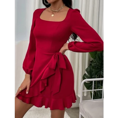 Com cinto Bainha de Ruffle Embrulhar ZÃper Simples Glamour Vestido