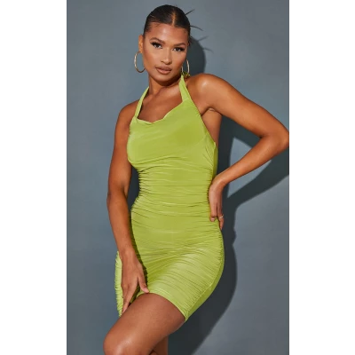 Get ready to show off your shape with this figure-worshipping dress. Featuring a chartreuse slinky material with a gathered side design and a halterneck style. Pair with clear slip-on heels and gold accessories for a night with the dolls. Length approx 86.5cm/34" (Based on a sample size UK 8) Model wears size UK 8/ EU 36/ AUS 8/ US 4 Model Height - 5ft 9"