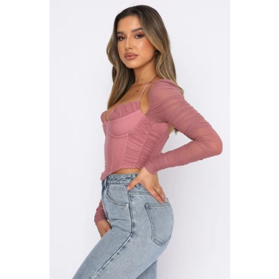 The No More Talking Top in Mauve is sure to get your look a bold update. Featuring long sleeves, halter neck, bust underwire, ruched detailing, zipper centre back, boning in bodice, curved edge and is lined to avoid sheerness. Pair with faux leather pants and heels for a stylish look. - 95% Polyester 5% Spandex - Model Height 166cm - Model is a Size XS & is wearing a Size XS