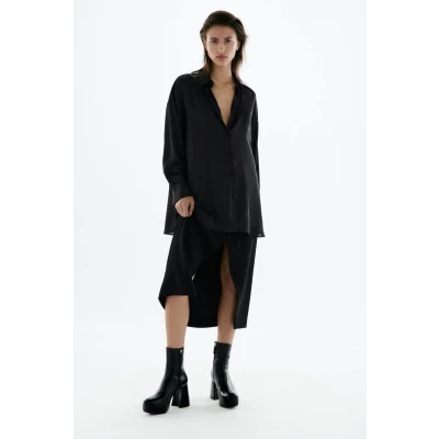 ROOMY SHIRT WITH LAPEL COLLAR AND LONG SLEEVES. SIDE VENTS AT HEM. FRONT CLOSURE WITH TONAL LINED BUTTONS.