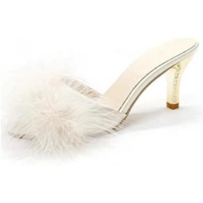 Amazon.com | COVOYYAR Women's Feather Thin High Heels Peep Toe Fur Slippers Mules Lady Pumps Slides | Mules & Clogs