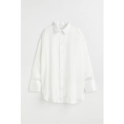 Relaxed-Fit Blouse In Woven Fabric. Collar, Buttons At Front, And Double-Layered Yoke At Back. Dropped Shoulders, Long Sleeves, And Wide Cuffs With Button. Rounded Hem, Slightly Longer At Back.