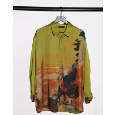 ASOS DESIGN oversized fit shirt with scenic abstract print in satin