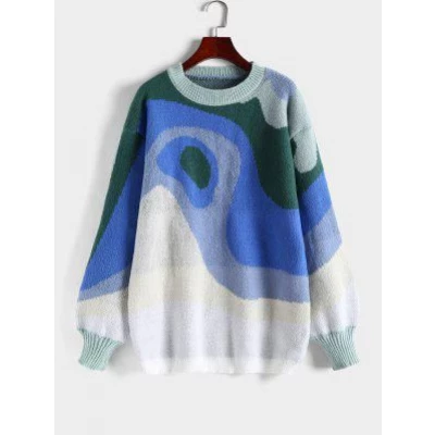 Oversized Crewneck Abstract Graphic Longline Sweater - Multi