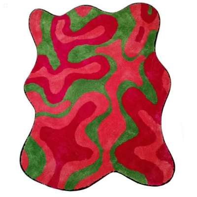 • 100% Polyester • Green, Pink & Red Anti Slip Rug