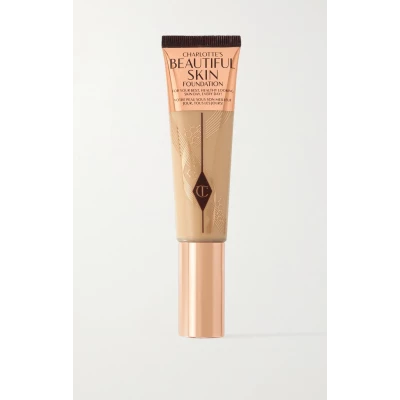 Charlotte Tilburys Beautiful Skin Foundation is packed with nourishing ingredients that give you a lit-from-within glow. Creamy and lightweight in texture, its infused with Hyaluronic Acid, Coconut Extract and Rose Complex that work to plump fine lines and boost brightness while keeping excess oil at bay. It offers buildable medium coverage and 16-hour wear. - 9 Neutral is suitable for tan skin with neutral golden undertones