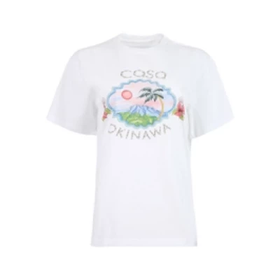 Tennis club logo tee from CASABLANCA featuring a relaxed silhouette, long sleeves, round neck, straight hem, house logo and a tennis court graphic printed at the front. Style it with white sweat shorts, chunky sneakers and a tote bag for a Sunday morning coffee run fit. Dimensions: Model is 5'9"/175cm and is wearing a size S Composition: 100% organic cotton Care: Machine wash Brand Style: WS22-JTS-002