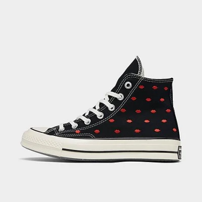 High-top edition of an iconic silhouette. Premium canvas for an elevated look and feel. Love-inspired embroidery and a ready-to-personalize tongue. Kiss-printed outsoles ace the assignment. Heritage details stay true to the original design. OrthoLite cushioning provides all-day comfort. The Chuck 70 Embroidered Love Casual Shoes are imported. Wear your heart on your feet with the Womens Chuck 70 Embroidered Love Casual Shoes. Allover love-inspired visuals take inspiration from Valentines Day c