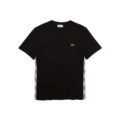 Cotton crewneck T-shirt featuring Lacoste logo tape down the sides and a signature embroidered crocodile at the chest.; Crewneck; Short sleeves; Pullover style; Cotton; Machine wash; ImportedSIZE & FIT; Regular-fit; About 28 from shoulder to hem