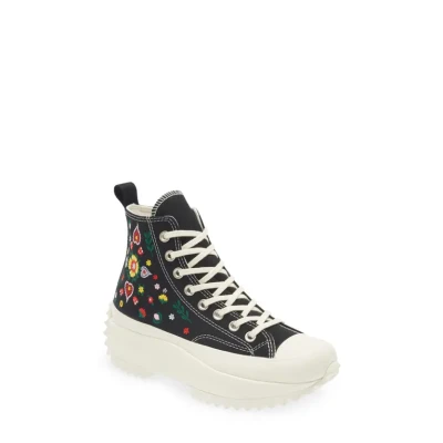 Delicate embroidery blooms on an iconic high-top boosted by a sculpted platform and toothy, serrated sole. 2 platform Removable, cushioned insole Textile upper and lining/rubber sole Imported