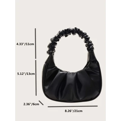 Color: Black Details: Ruched Type: Ruched Bag Style: Fashionable Quantity: 1 piece Strap Type: Top Handle Bag Size: Small Pattern Type: Plain Composition: 100% Polyurethane Material: PU Leather