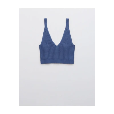 Aerie Cropped Sweater Tank Top Womens Marbled Blue