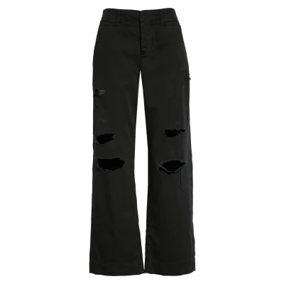 Tattered rips bring modern edge to the classically polished style of easy-fitting twill trousers cut with a high waist and cropped, rollable hems. 26 inseam, 18 leg opening; 11 front rise; 16 back rise (size 29) Button fly Front and back welt pockets 100% cotton Machine wash, tumble dry Imported Womens Clothing