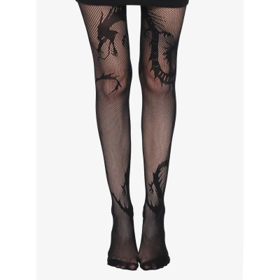 Time to level up your fishnet game with this pair of black ones featuring a dragon pattern all over.