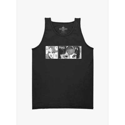 Add more horror to your wardrobe with a Junji Ito tank top! This black tank was inspired by the obsession with spirals in Uzumaki, and is printed on the front with panels from the manga.