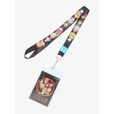 Taking back the kingdom? Youll need to keep your essentials close to you with this lanyard! Printed with chibi versions of The Seven Deadly Sins characters and the anime title on both sides, plus a clear ID pouch attached to a swiveling hook.