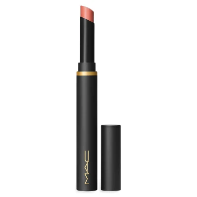 WHAT IT IS A lipstick that provides 12 hours of on-trend, mega-bold color and ultra-weightless wear in a single, velvet-soft swipe. Experience moisture-matte to the max with MACs Powder Kiss Velvet Blur Slim Lipstick. Designed for all-day wear, this lipstick will hydrate the lips instantly and over time. 0.07 oz. Made in USA. WHAT IT DOES Bold Matte Meets Moisture with the Powder Kiss Velvet Blur Slim Lipstick. The more one applies, the softer, smoother, and suppler the lips will feel with full