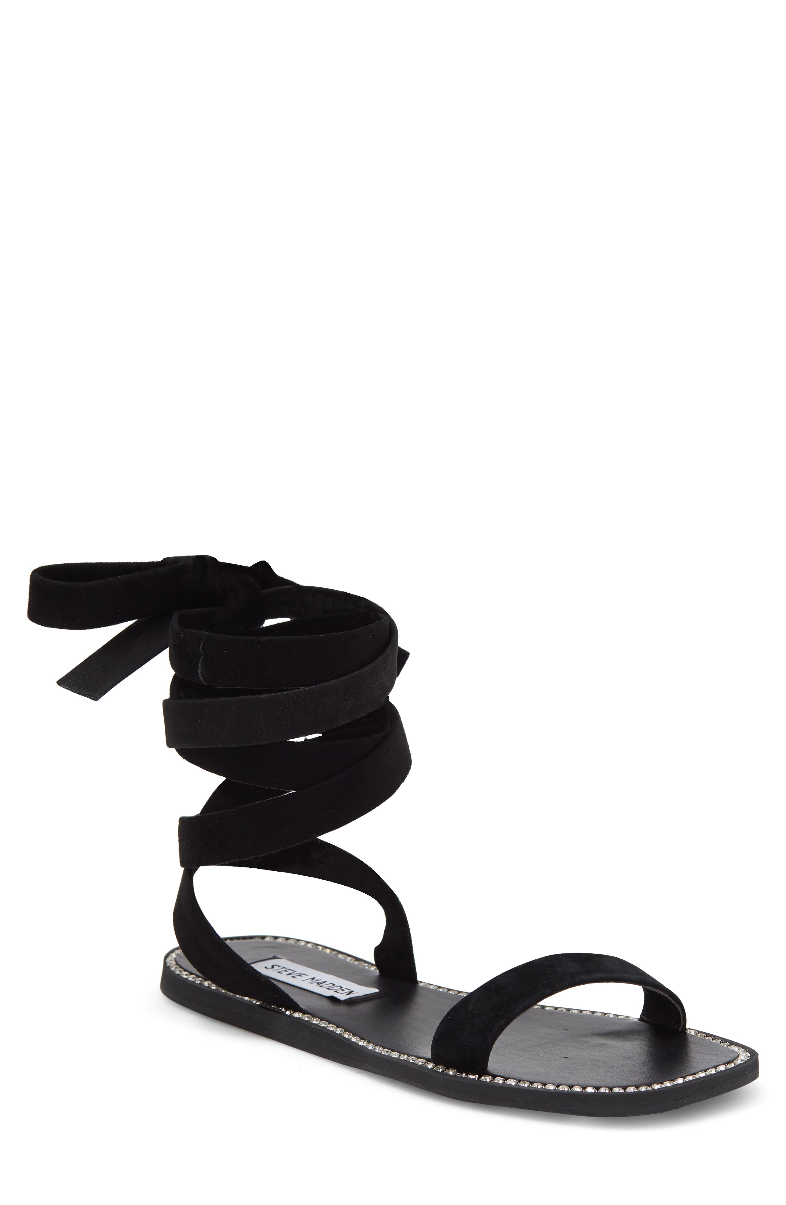 Wrap-around ankle ties bring on-trend style to this leather pair of flat sandals for chic summer looks. Open toe Wrap-around ankle closure Leather upper/manmade sole Imported