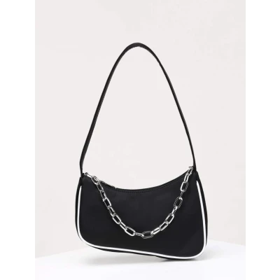 Chain Decor Piping Trim Baguette Bag