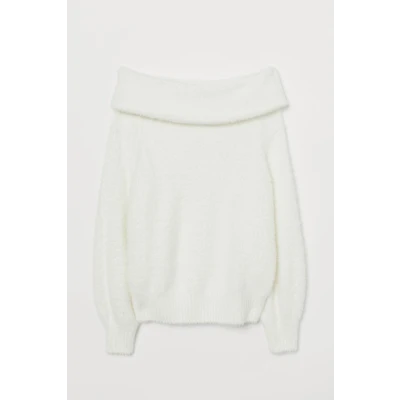 Fluffy off-the-shoulder jumper - White - Ladies | H&M GB
