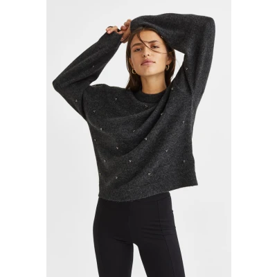 Pullover mit Perlen - Dunkelgrau - Ladies | H&M DE