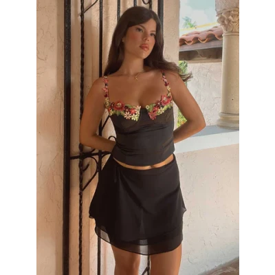 Mini skirt Slim fitting 100% polyester Sheer mesh material Wrap style Tie fastening at side Non-stretch Unlined