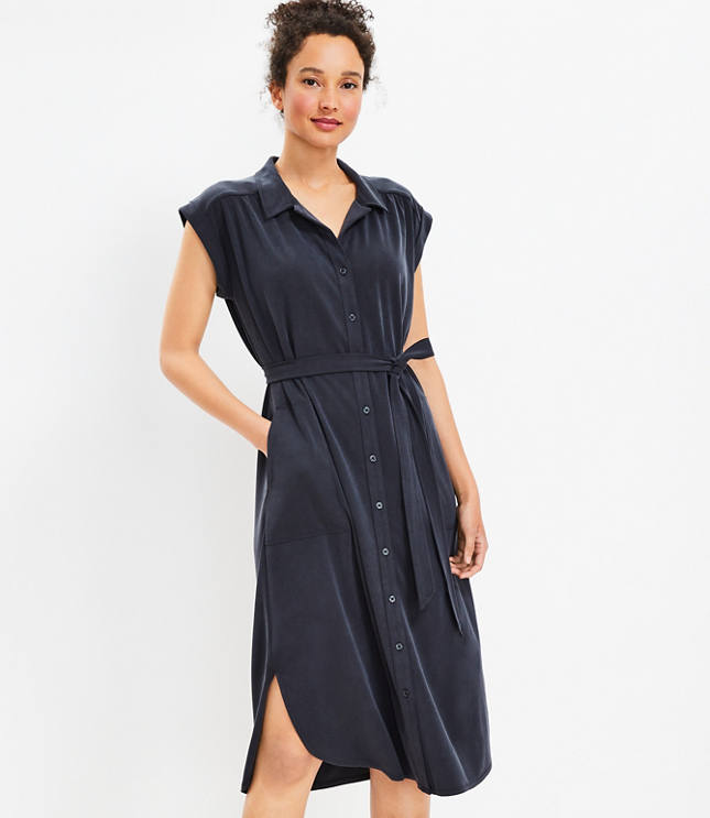 Sandwashed for an airy light and super silky feel, were into the irresistibly cool attitude of our latest do-it-all. Point collar. Short dolman sleeves. Button front. Removable waist tie. Slash patch pockets. Back yoke with box pleat beneath. Shirttail hem., Fabric:Fabric: Soft knit, Hit:Hit: Midi - Hits at mid-calf, Imported:Imported, Fit:Fit: Straight - fits straight & loose, Length:46 from shoulder to hem, measured from a size S, Fabrication:72% Modal, 28% Polyester, Garment Care:Machine wa