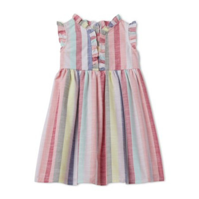 Colorful Stripes And A Hint Of Ruffles Create A Cute Look On This Sleeveless Dress From Wonder Nation. • Ruffle Trim Neckline With Inset • Sleeveless • Lined Skirt • Back Button Closure • 100% Cotton • Machine Washable • Made In The Philippines