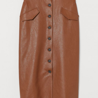 Calf-Length Skirt In Faux Leather With A High Waist, Buttons At Front, And Mock Front Pockets With Flap. Lined. Composition • Viscose 100% • Lining: Polyester 100% • Coating: Polyurethane 100%