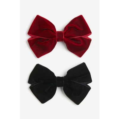 H & M - 2-pack Velvet-bow Hair Clips - Red