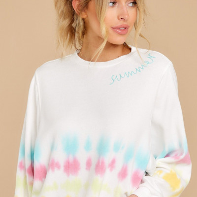 Who Wouldn't Want To Spend Everyday In Paradise With You? Right? Well, Since That's Just Not Happening At The Moment, You Can Snag This Amazing Sweatshirt And Make Your Own Utopia (And Take It Wherever You Go). Just Sayin'. Tie Dye Sweatshirt Features A Round Neckline, A Fleece Interior, Embroidered "Summer" Detailing, Long Dolman Sleeves, And A Boxy Fit. Model Is Wearing A Small. • 60% Cotton 40% Polyester • Machine Wash Cold • Unlined • Imported Disclaimer*- Due To The Unique Treatment Of This Garment It Is Typical To See Color And Shade Differences. This Is An Intentional Feature Of This Style And No Two Garments Are Alike.