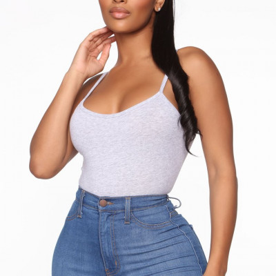 • Available In Olive, Black, Heather Grey, Navy, Red, And White. • Scoop Neck Crop Top • Adjustable Spaghetti Straps • Stretch • 95% Cotton 5% Spandex • Imported