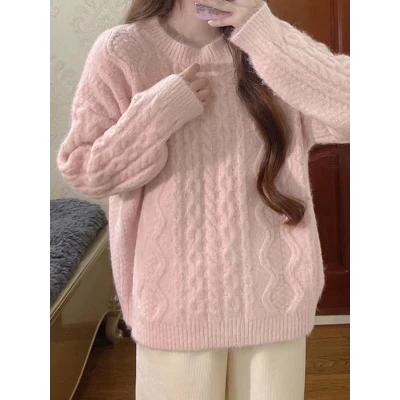 Solid Cable Knit Pullover Sweater