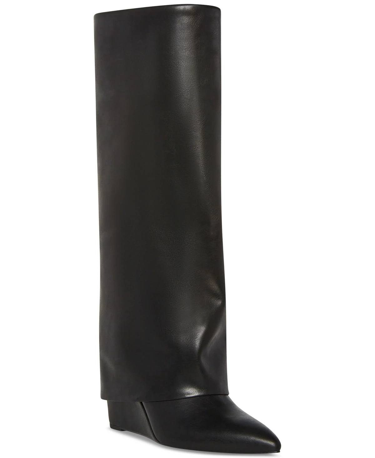 Long cuffs accent sleek wedges and pointed toes for a go-to look in the stylish Evander wide-calf boots by Madden Girl.