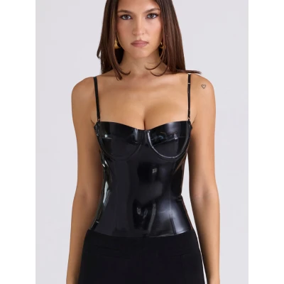 NOELLA Black Latex Corset Top | Nordstrom