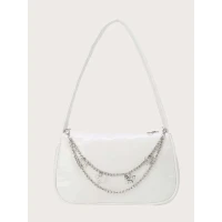 Metal Butterfly & Chain Decor Baguette Bag